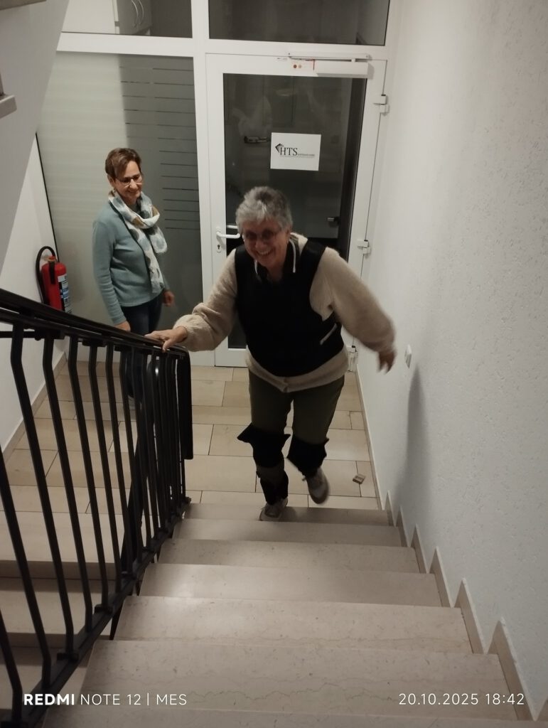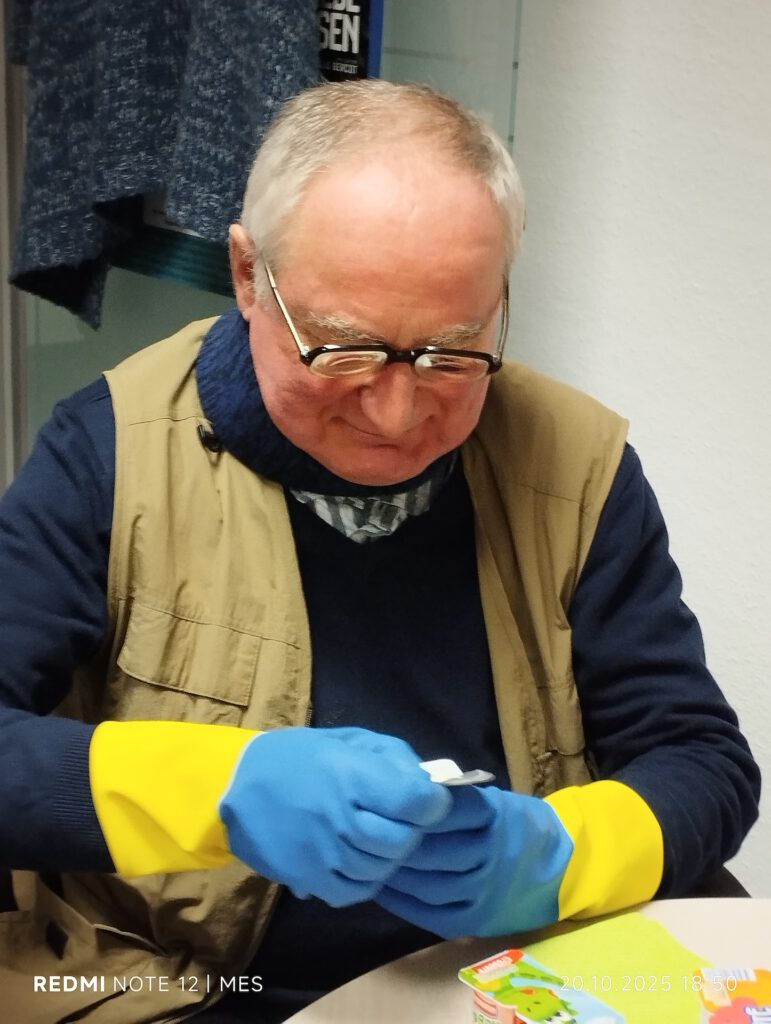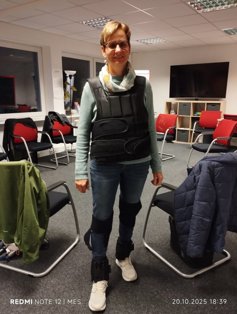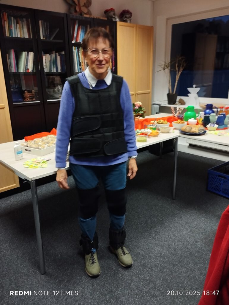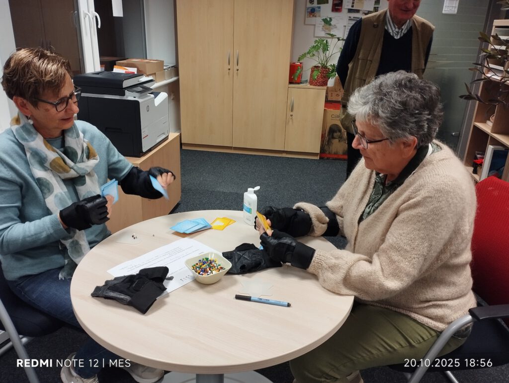 Nach einem kurzen Theorieteil zu physischen und mentalen Aspekten folgte ein praktischer Teil: Mit Teilen eines Altersimulationsanzugs konnten die Teilnehmenden selbst erfahren, wie sich eingeschränkte Beweglichkeit und Sinneswahrnehmung im Alltag auswirken. Diese eindrücklichen Übungen förderten Empathie und Verständnis für die Situation betroffener Personen.